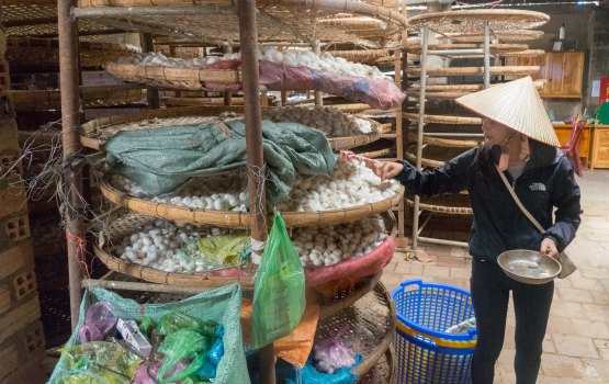 Silk worms as they come into the factory